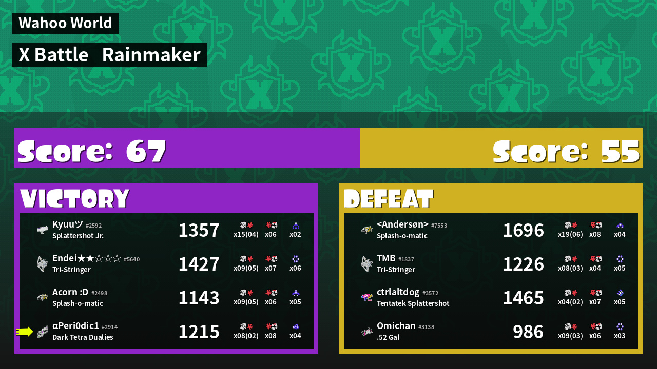 | Mode |    Rainmaker -   X Battle | ||