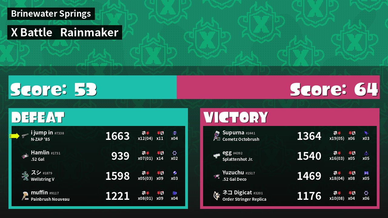 | Medals | #1 Overall Splatter #1 Score Booster #1 Turf Inker |