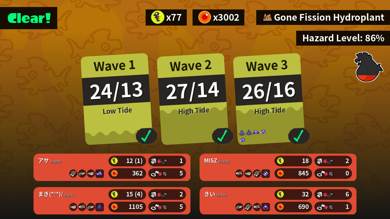 | Weapons | Splat Dualies Ballpoint Splatling Goo Tuber | Ballpoint Splatling Splat Dualies Blaster | Blaster Goo Tuber Splat Dualies | Goo Tuber Blaster Ballpoint Splatling |