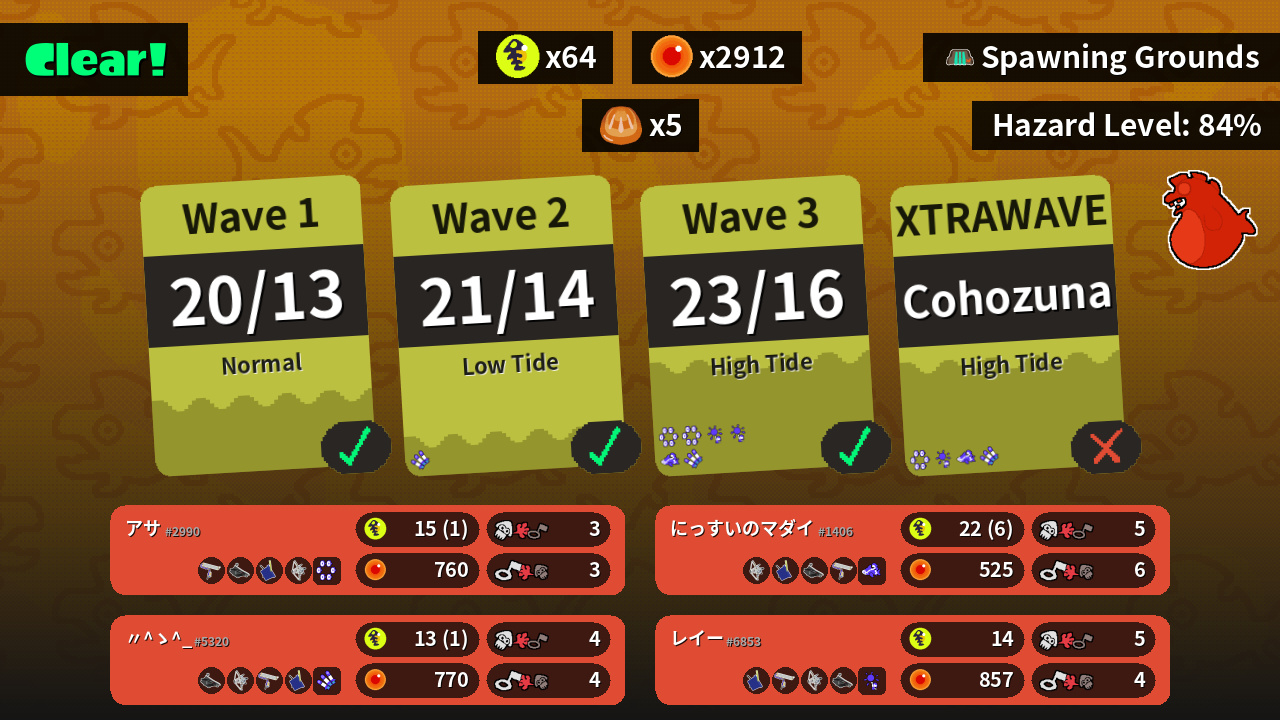 | Boss Salmonid | 8 | 13 | 8 | 5 |