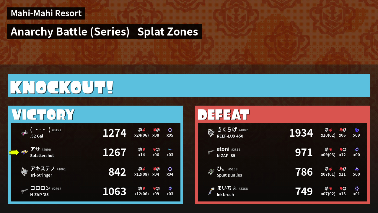 | Mode | Splat Zones - Anarchy Battle (Series) | ||