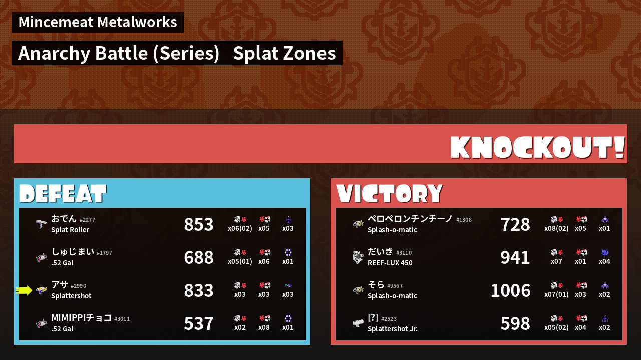 | Mode | Splat Zones - Anarchy Battle (Series) | ||