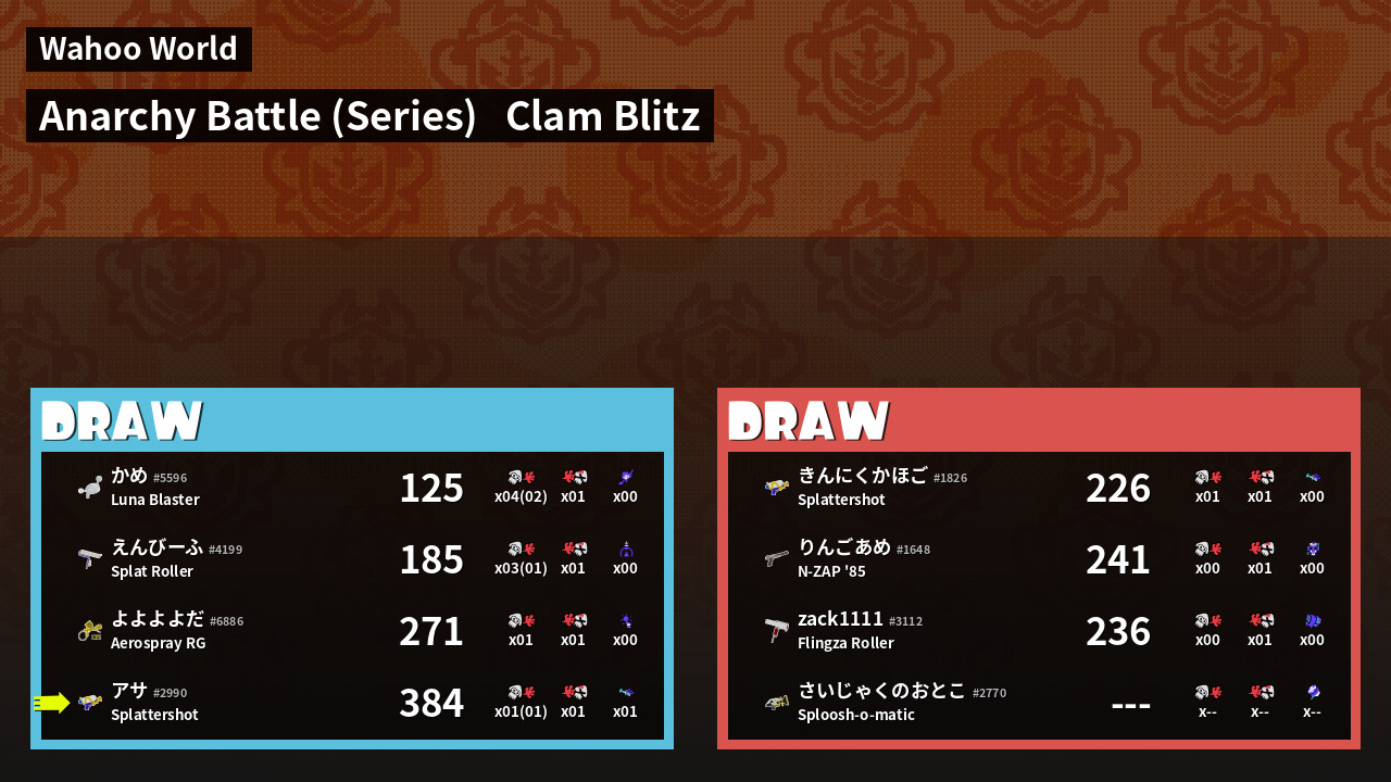 | Mode | Clam Blitz - Anarchy Battle (Series) | ||
