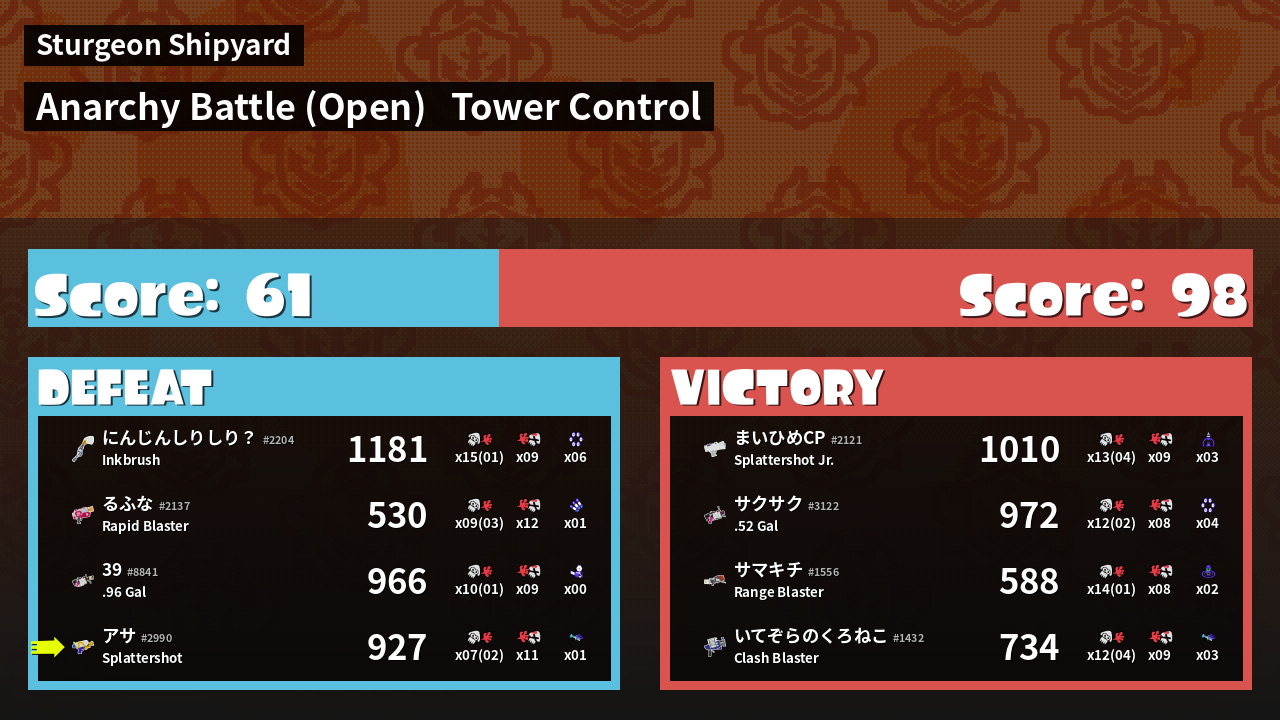 | Mode | Tower Control - Anarchy Battle (Open) | ||