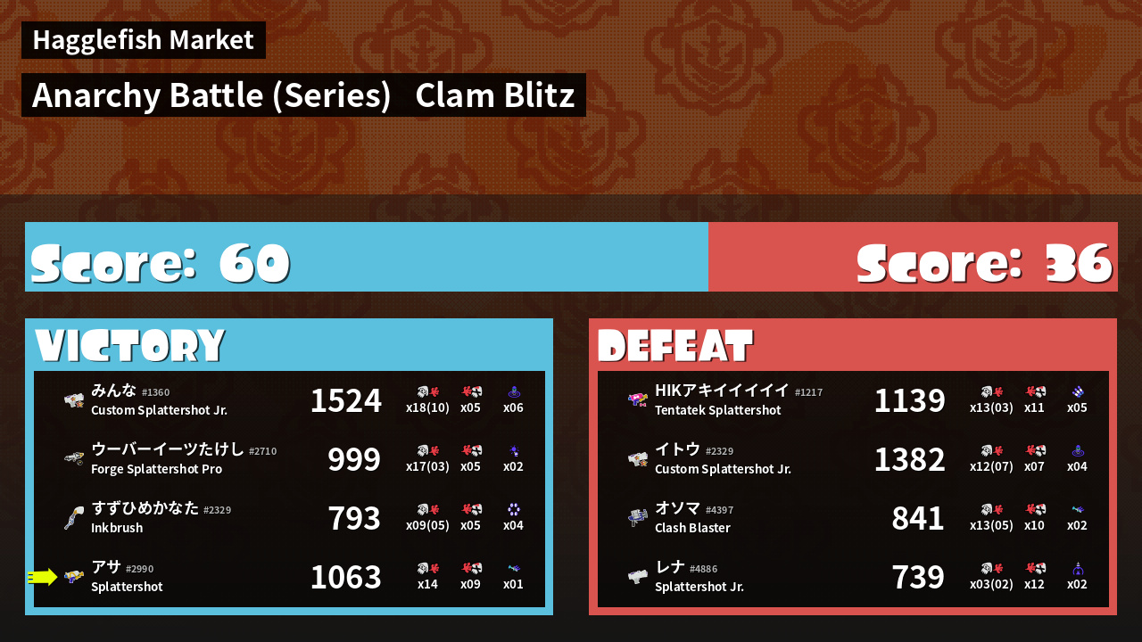 | Mode | Clam Blitz - Anarchy Battle (Series) | ||