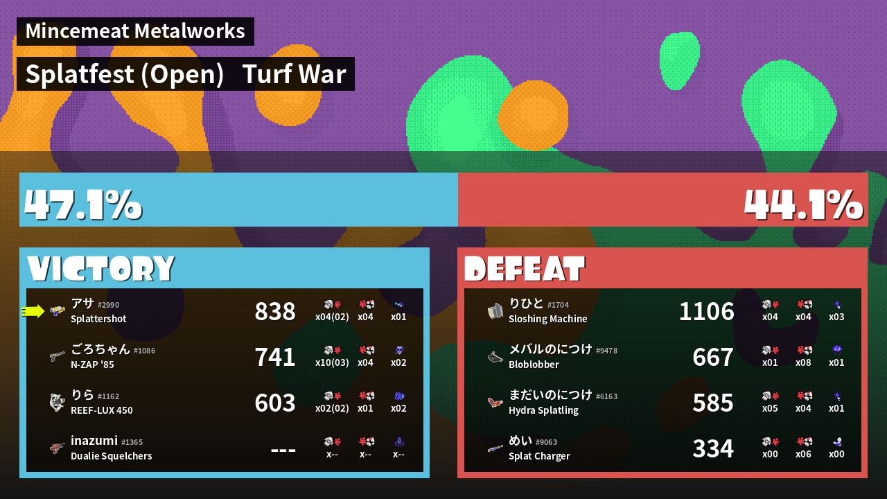 | Medals | #1 Turf Inker #1 Enemy-Base Inker #1 Ground Traveler | ||