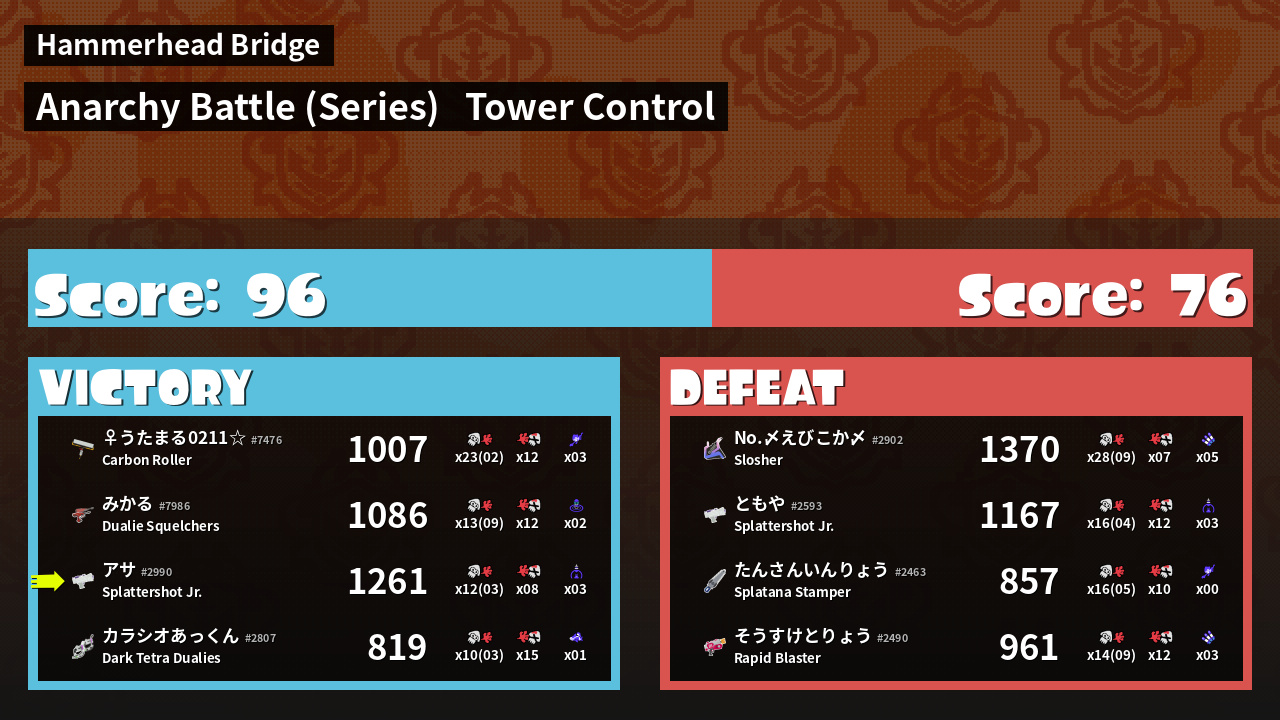 | Mode | Tower Control - Anarchy Battle (Series) | ||