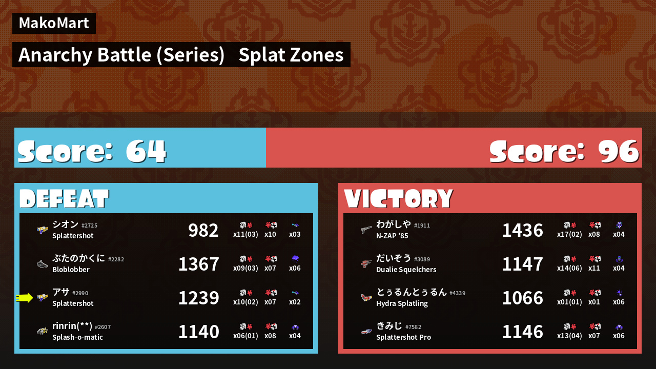 | Mode | Splat Zones - Anarchy Battle (Series) | ||
