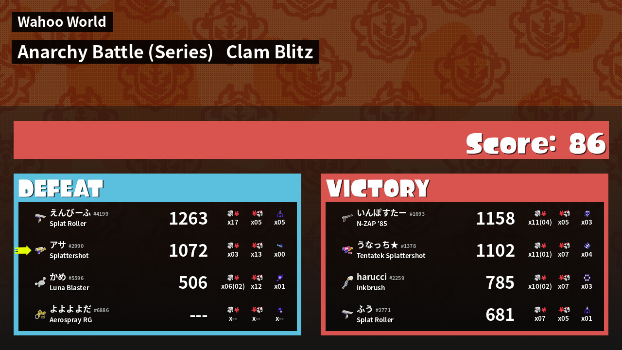 | Mode | Clam Blitz - Anarchy Battle (Series) | ||