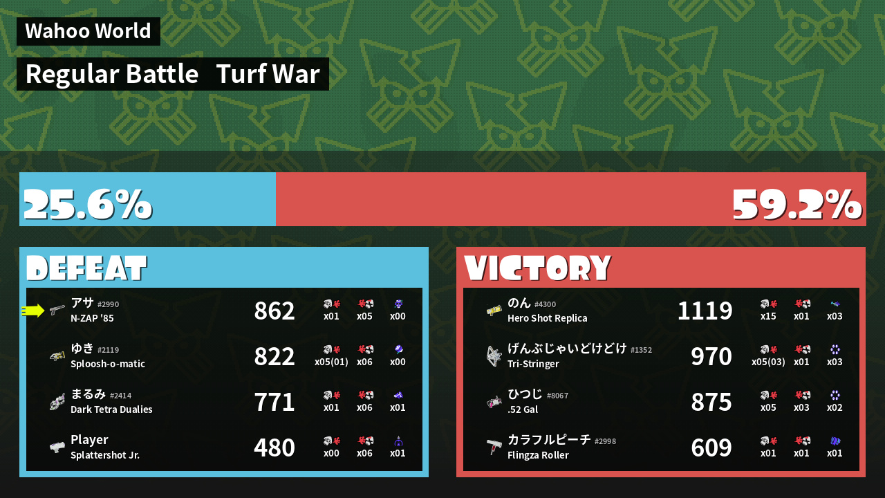 | Medals | #1 Turf Inker #1 Ground Traveler #2 Overall Splatter | ||
