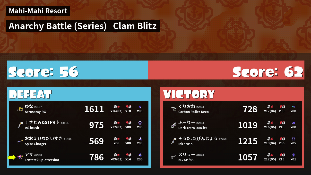 | Mode | Clam Blitz - Anarchy Battle (Series) | ||