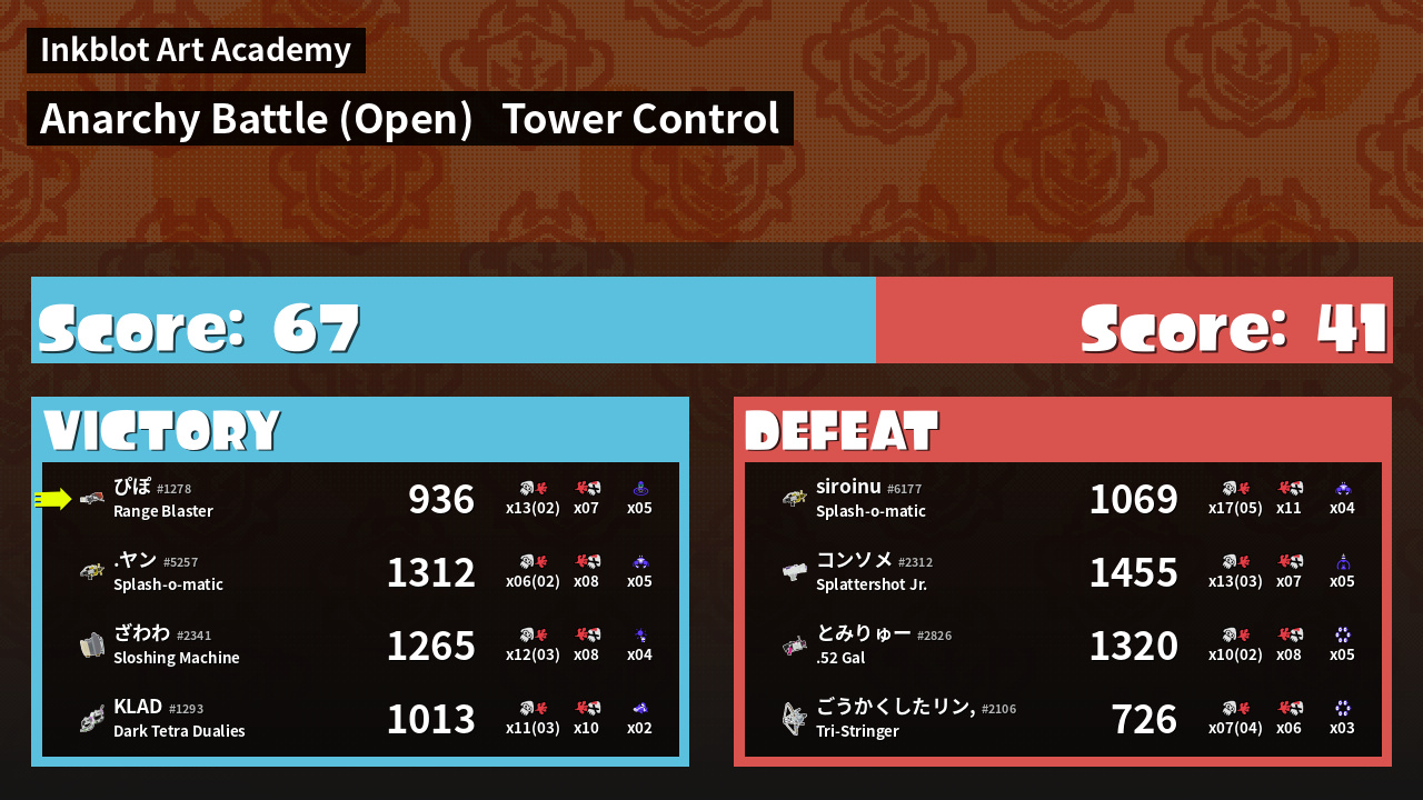 | Mode | Tower Control - Anarchy Battle (Open) | ||