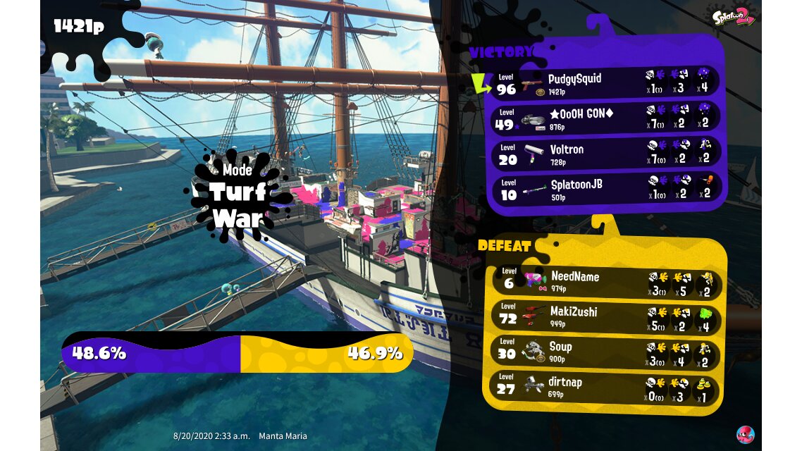 | Mode | Turf War - Regular Battle | ||||||||||||||||
