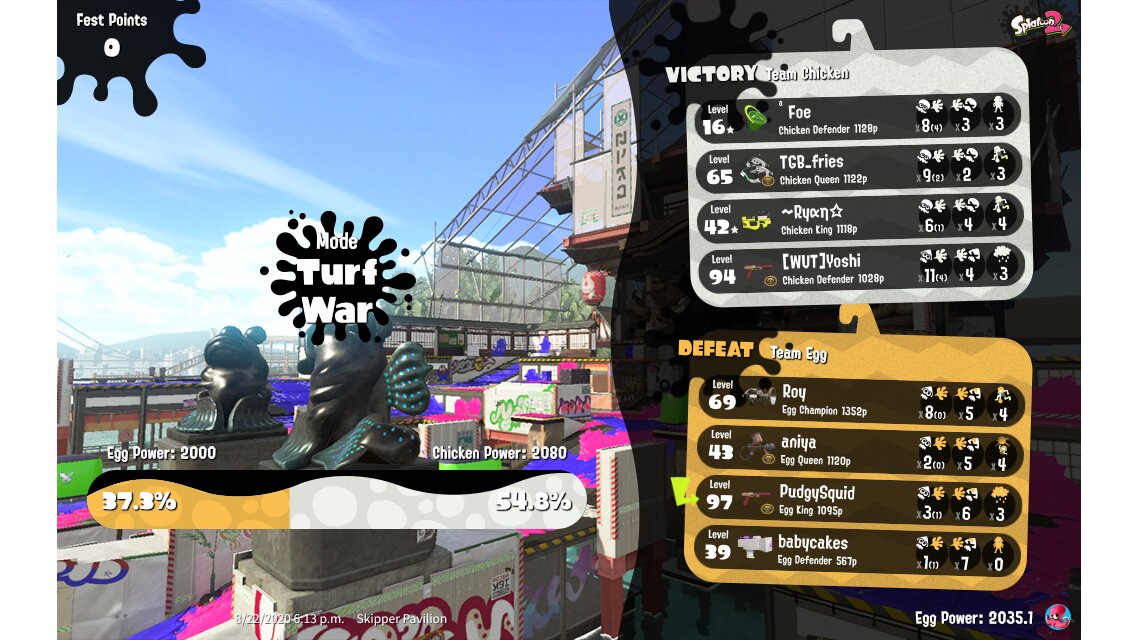 | Mode | Turf War - Splatfest (Pro) | ||||||||||||||||