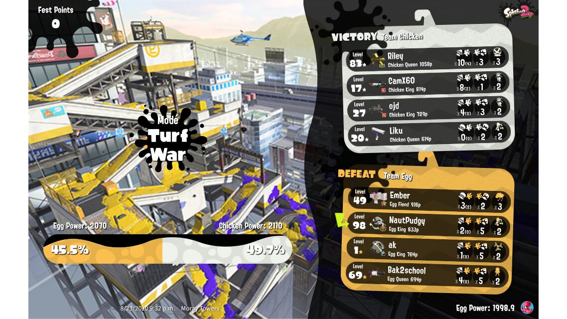 | Mode | Turf War - Splatfest (Pro) | ||||||||||||||||