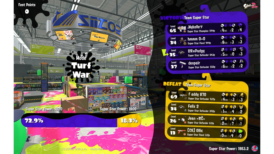 | Splatfest Power | 1,863.2 | |||||||||||||||||||||||||||||||||||||