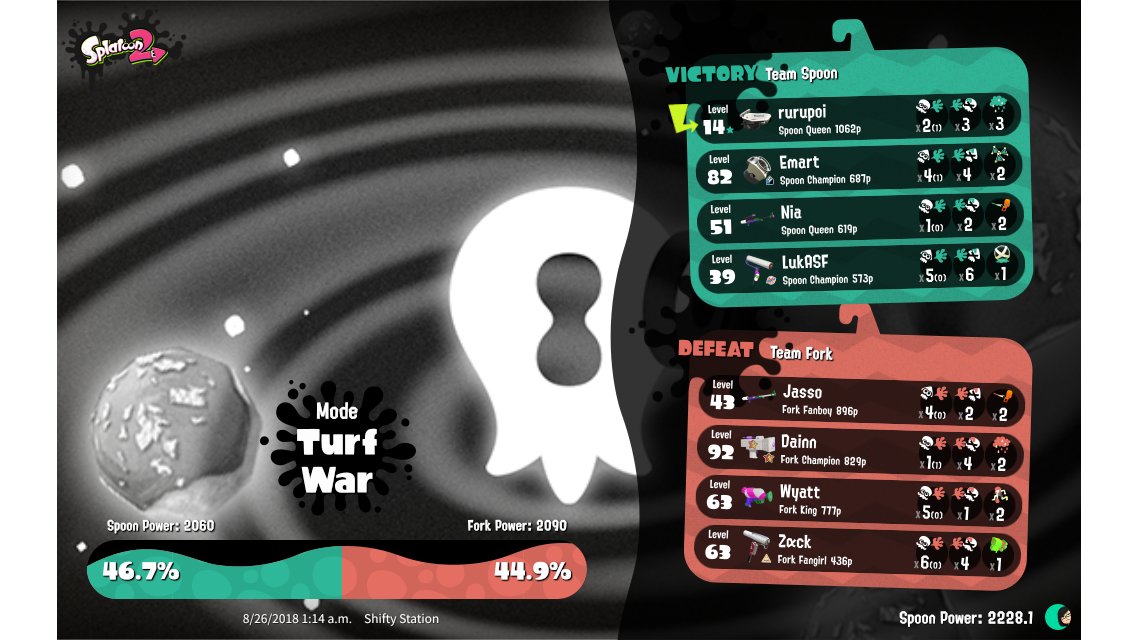 | Splatfest Power | 2,228.1 | ||||||||||||||||||||||||||||||||||