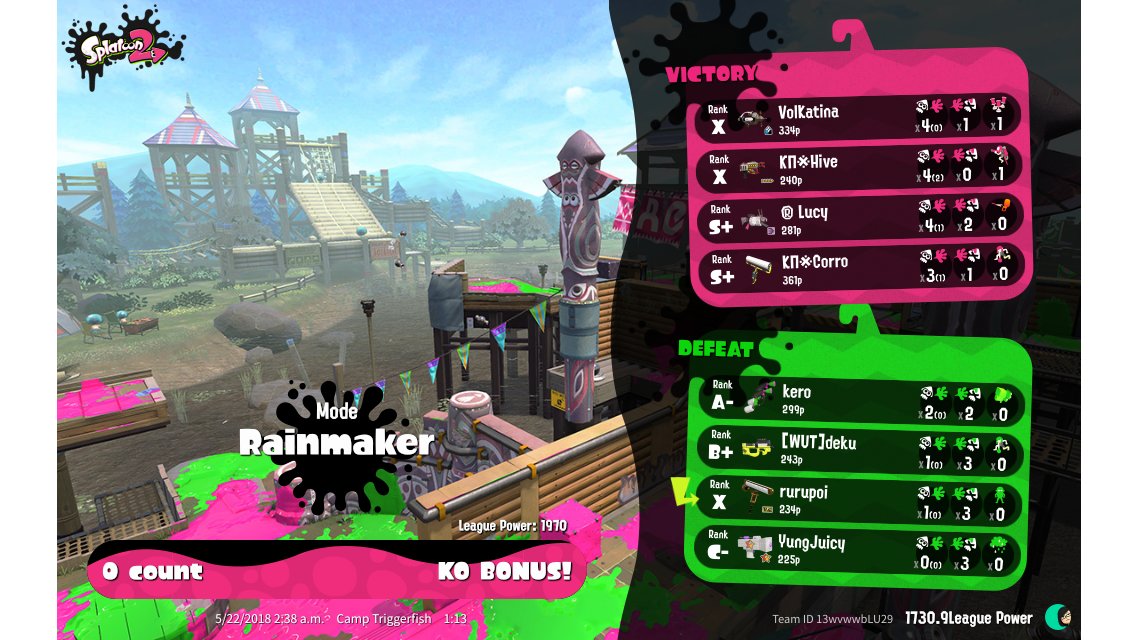| Mode | Rainmaker - League Battle (Twin) | ||||||||||||||||||||||||||||