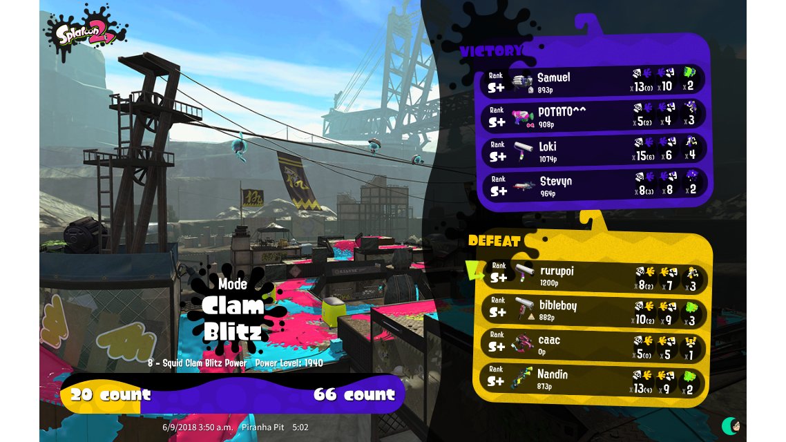 | Mode | Clam Blitz - Ranked Battle | ||||||||||||||||||||||||||||||||||