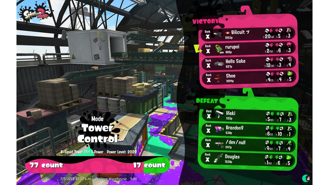 | Mode | Tower Control - Ranked Battle | ||||||||||||||||||||||||||||||||||