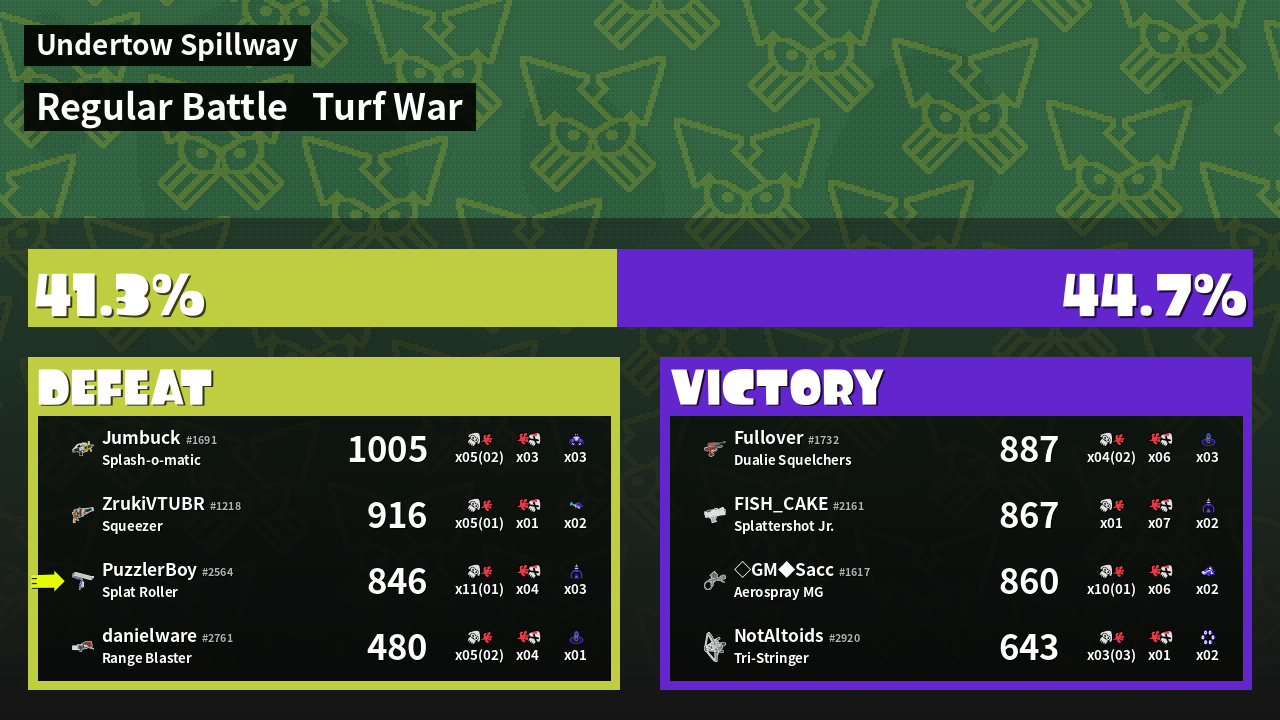 | Medals | #1 Overall Splatter #1 Enemy Splatter #1 Ink Consumer | ||