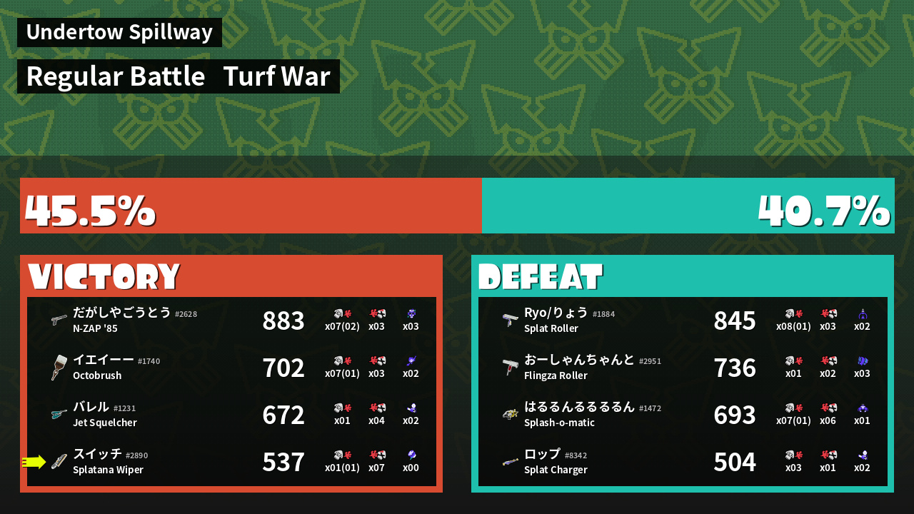 | Medals | #2 Enemy-Base Inker #2 Splat Assister | ||