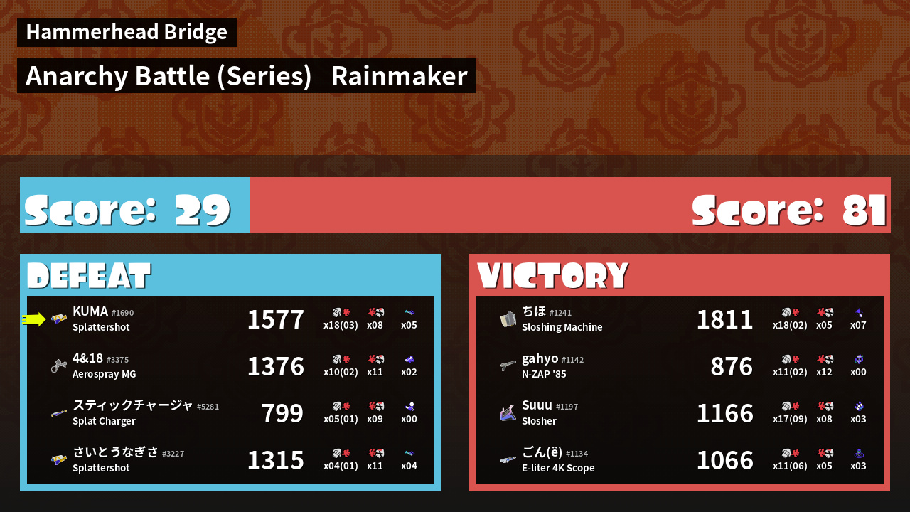 Kills / Deaths | 15 + 3 / 8 > Kill Ratio: 1.88 | ||||