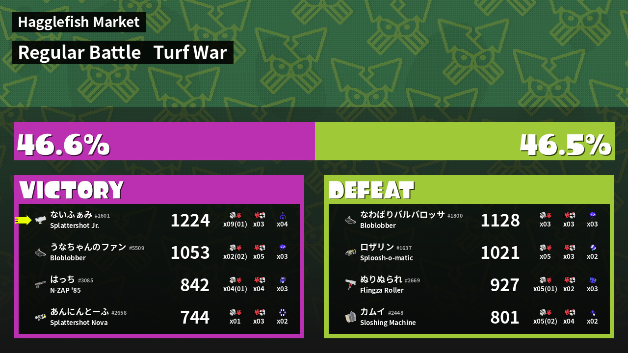 | Mode | Turf War - Regular Battle | ||