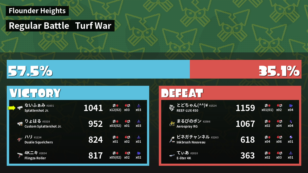 | Mode | Turf War - Regular Battle | ||