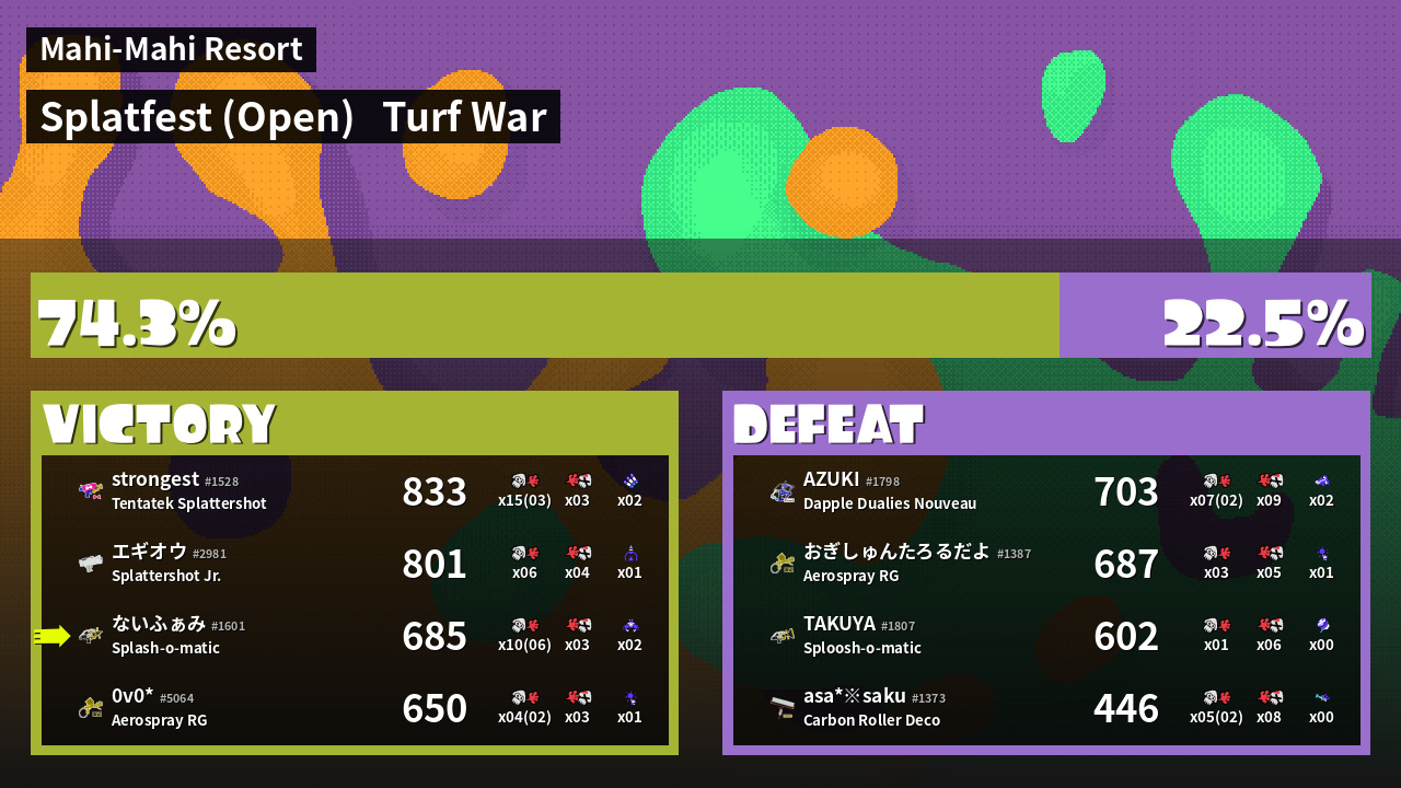 | Mode | Turf War - Splatfest (Open) | ||