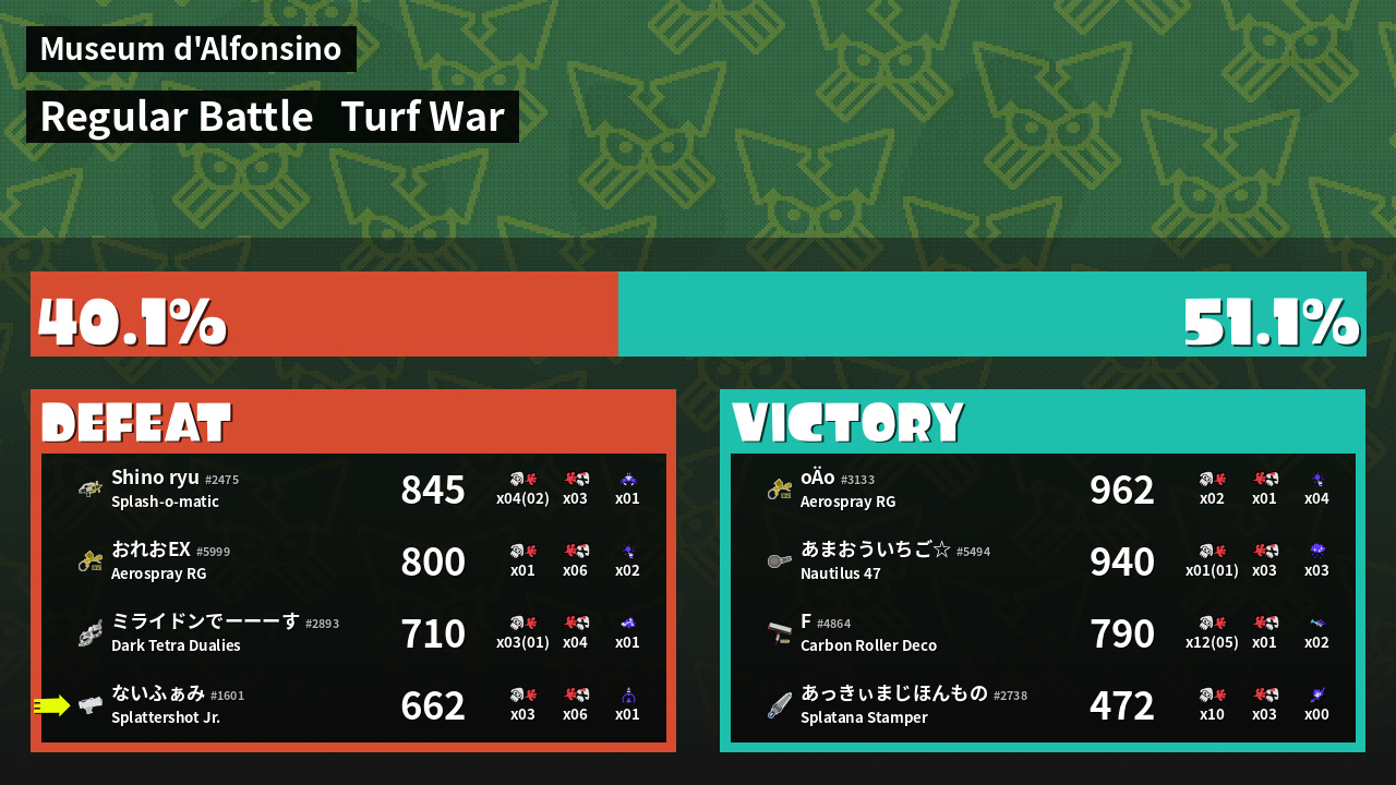 | Medals | #1 Enemy-Base Inker #1 Enemy Splatter #1 Damage Taker | ||