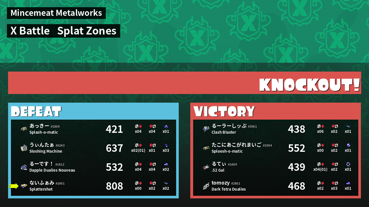 | Weapon | Splattershot ( Suction Bomb / Trizooka) | ||