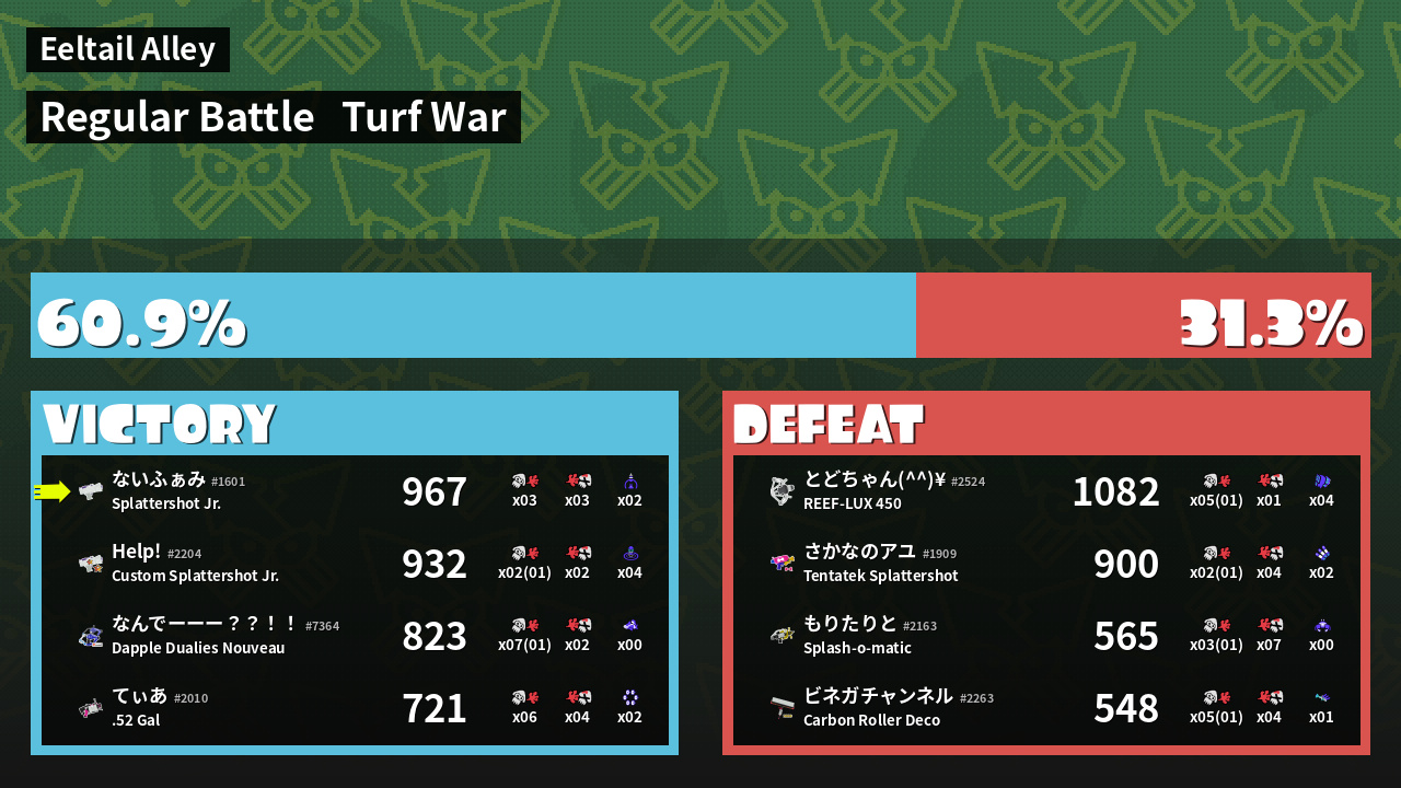 | Medals | #1 Turf Inker #1 Popular Target #1 Enemy-Base Inker | ||