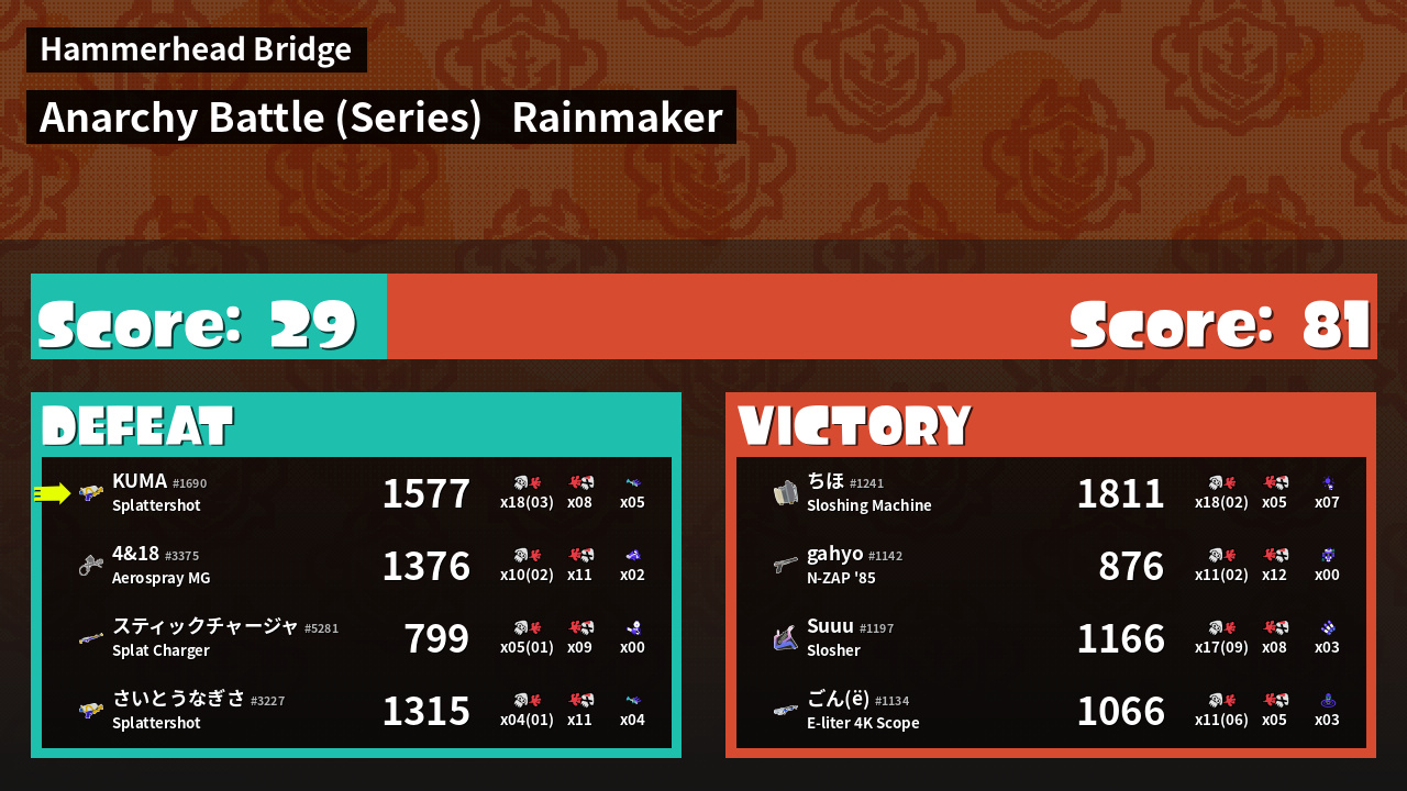 Kills / Deaths | 15 + 3 / 8 > Kill Ratio: 1.88 | ||