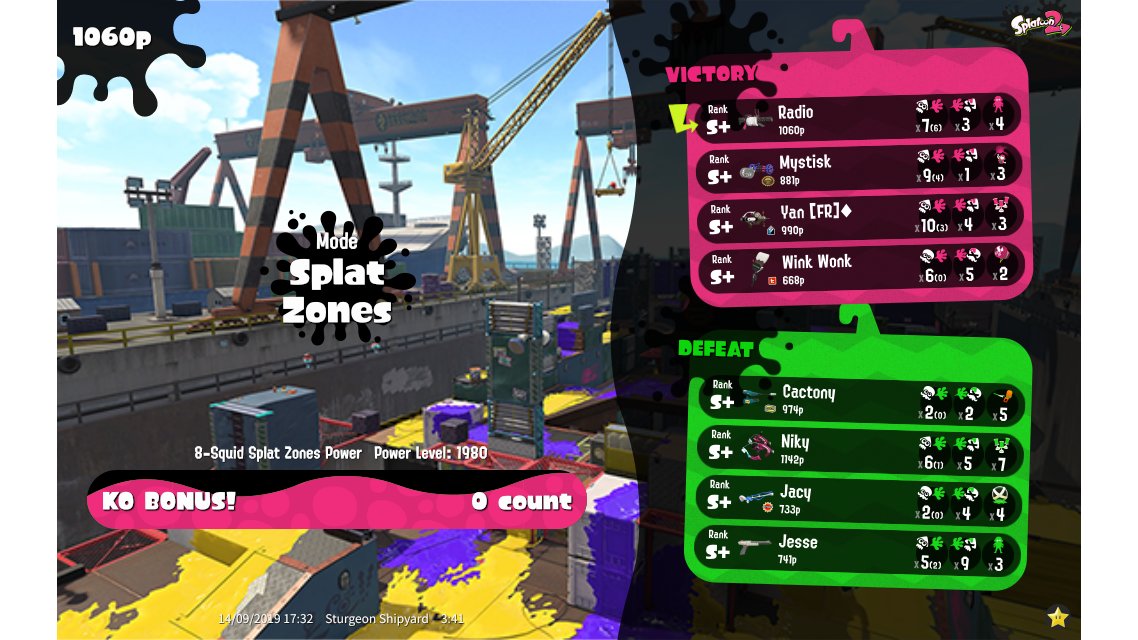 | Mode | Splat Zones - Ranked Battle | ||||||||||||||||