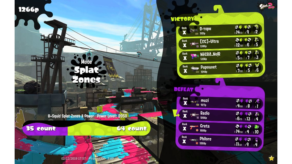 | Mode | Splat Zones - Ranked Battle | ||||||||||||||||