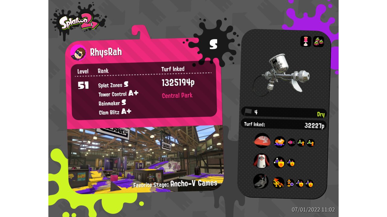 | Name | Weapon | Level | Rank | Inked | k+a/sp | k/d |