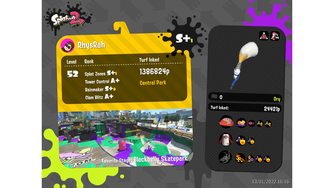 | Weapon | Inkbrush ( Splat Bomb, Splashdown) | |||||||||||||||||||||||||||||||||||||