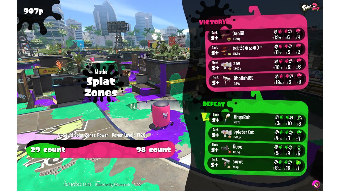 | Mode | Splat Zones - Ranked Battle | |||||||||||||||||||||||||||||||||||||