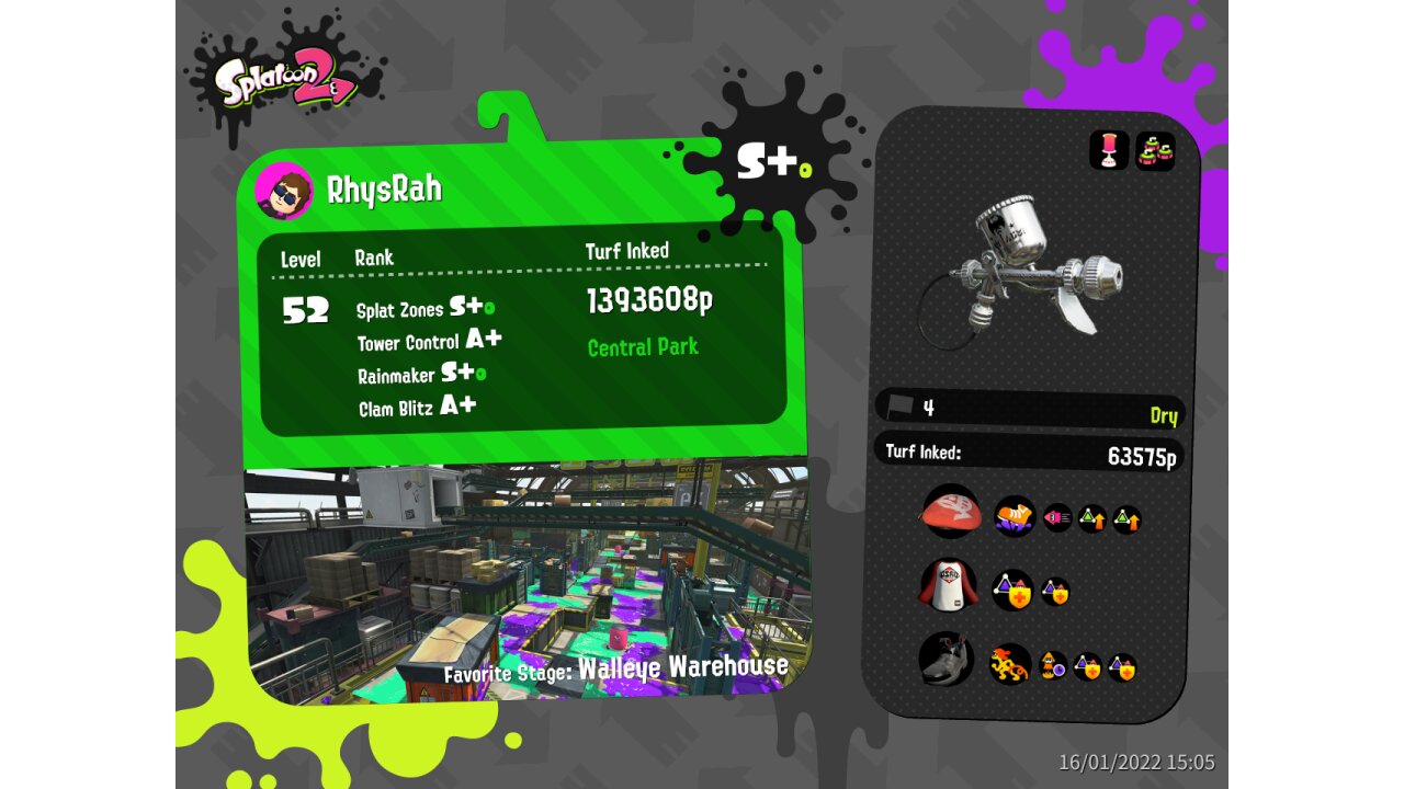 | Name | Weapon | Level | Rank | Inked | k+a/sp | k/d |