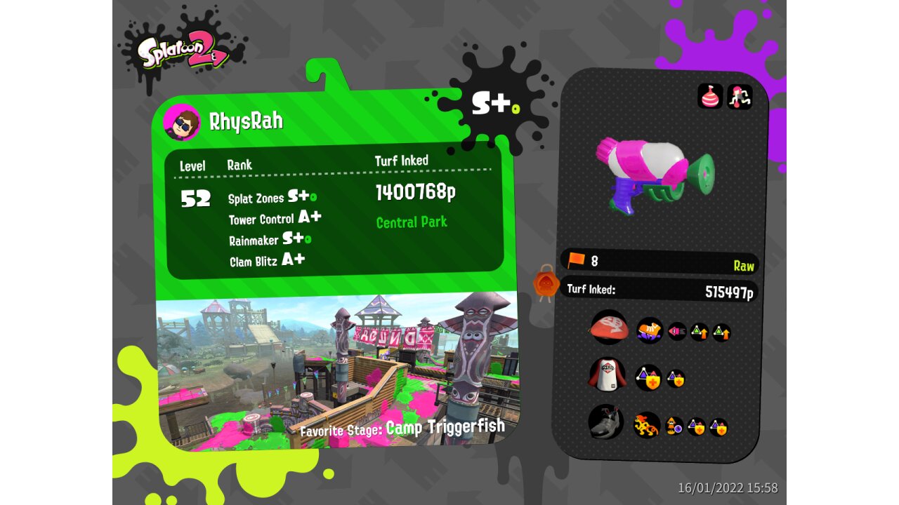 | Weapon | Splattershot ( Burst Bomb, Splashdown) | |||||||||||||||||||||||||||||||||||||