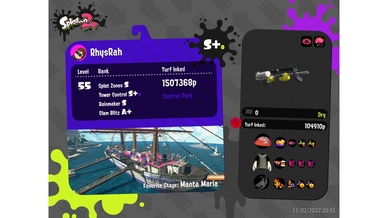 | Name | Weapon | Level | Rank | Inked | k+a/sp | k/d |
