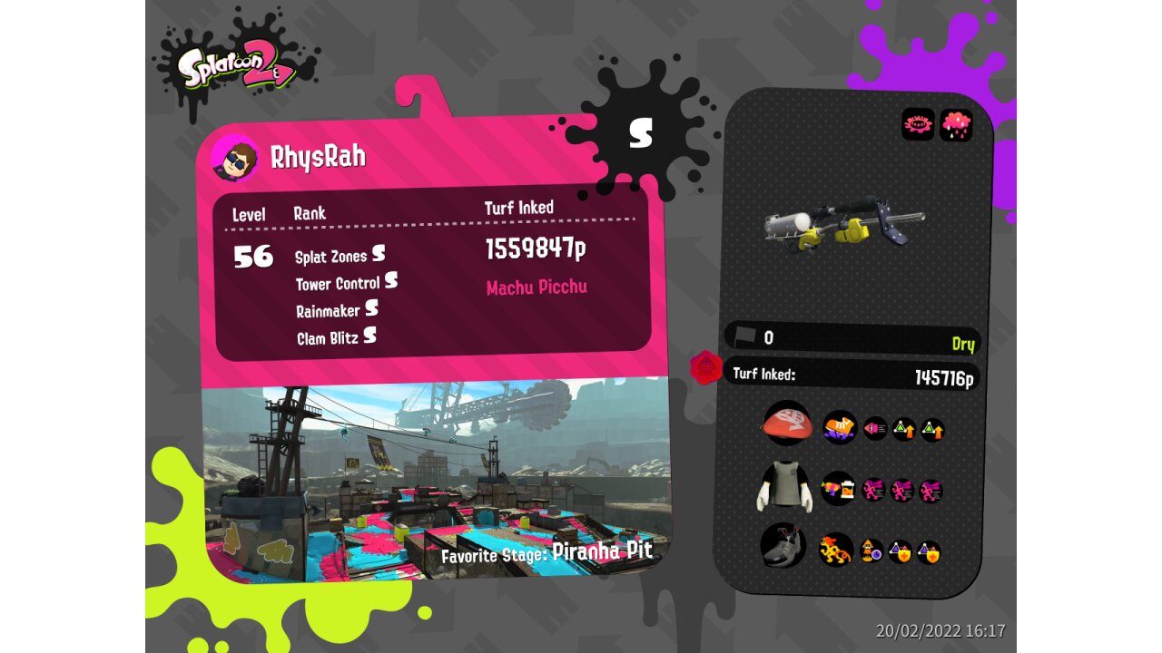 | Name | Weapon | Level | Rank | Inked | k+a/sp | k/d |
