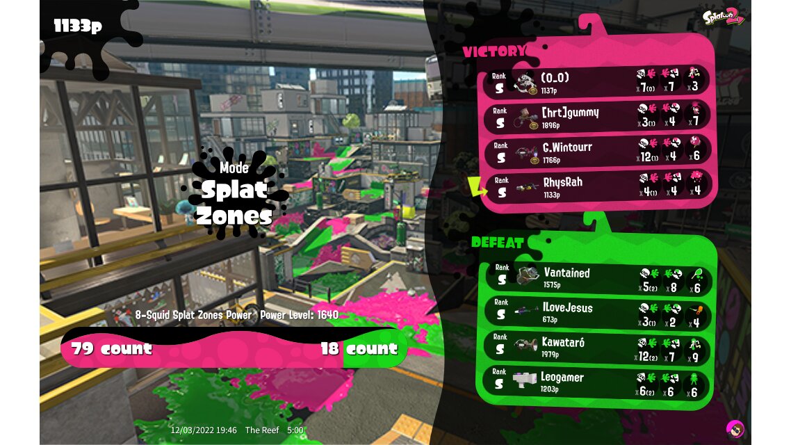 | Mode | Splat Zones - Ranked Battle | |||||||||||||||||||||||||||||||||||||||||||