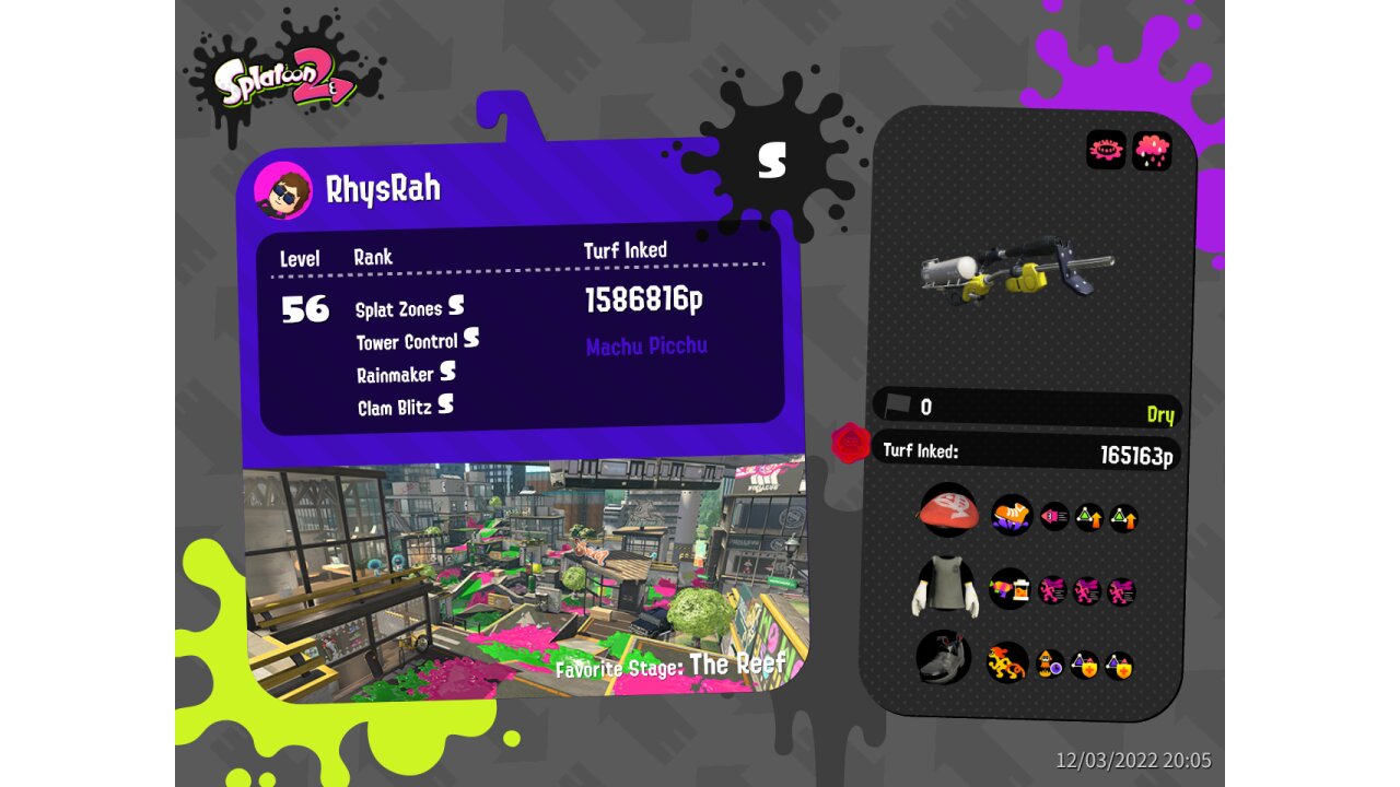 | Name | Weapon | Level | Rank | Inked | k+a/sp | k/d |