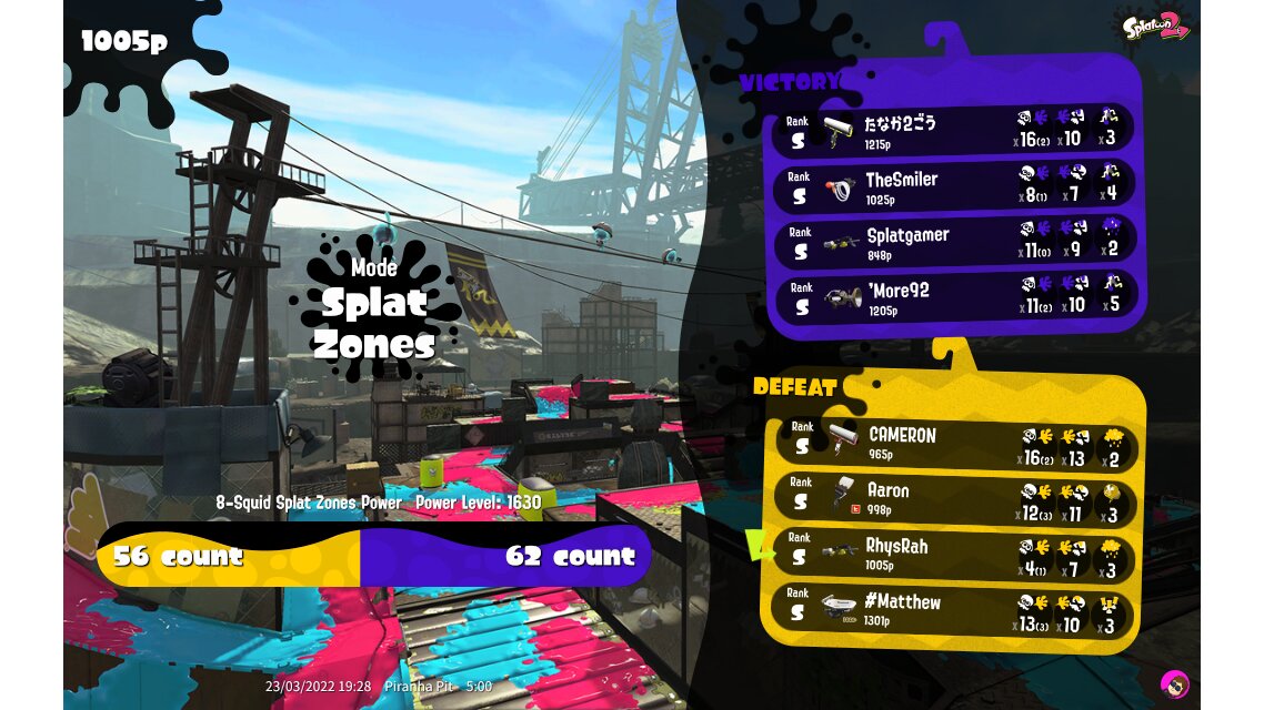 | Mode | Splat Zones - Ranked Battle | |||||||||||||||||||||||||||||||||||||||||||