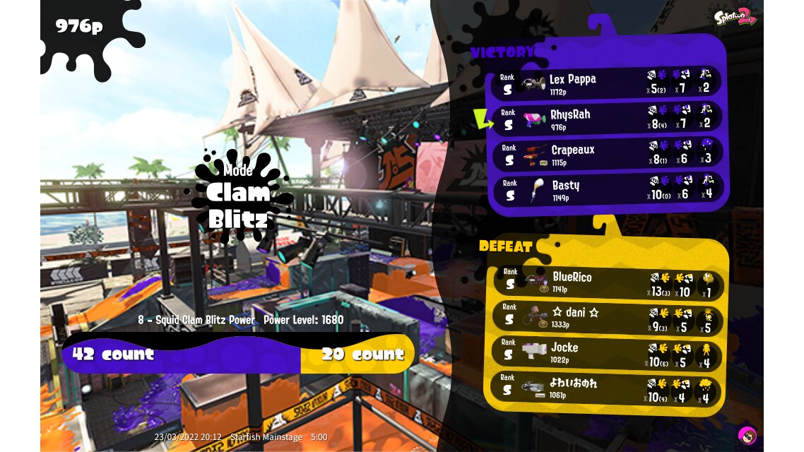 | Mode | Clam Blitz - Ranked Battle | |||||||||||||||||||||||||||||||||||||||||||