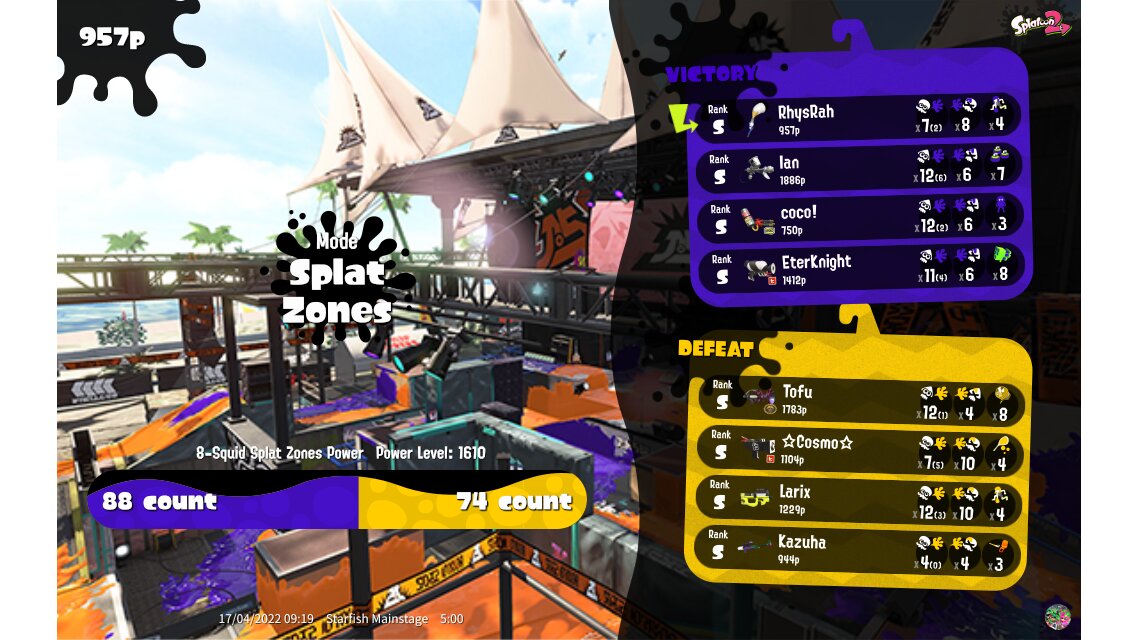 | Mode | Splat Zones - Ranked Battle | |||||||||||||||||||||||||||||||||||||||||||