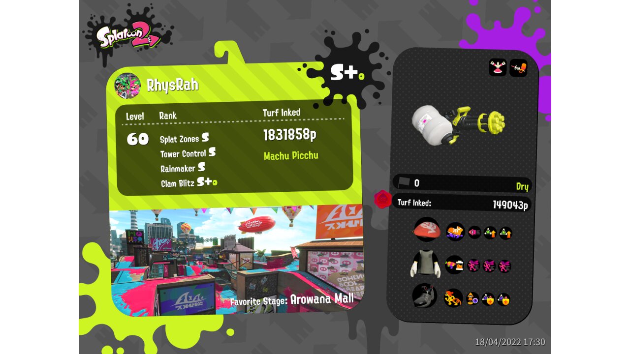 | Name | Weapon | Level | Rank | Inked | k+a/sp | k/d |