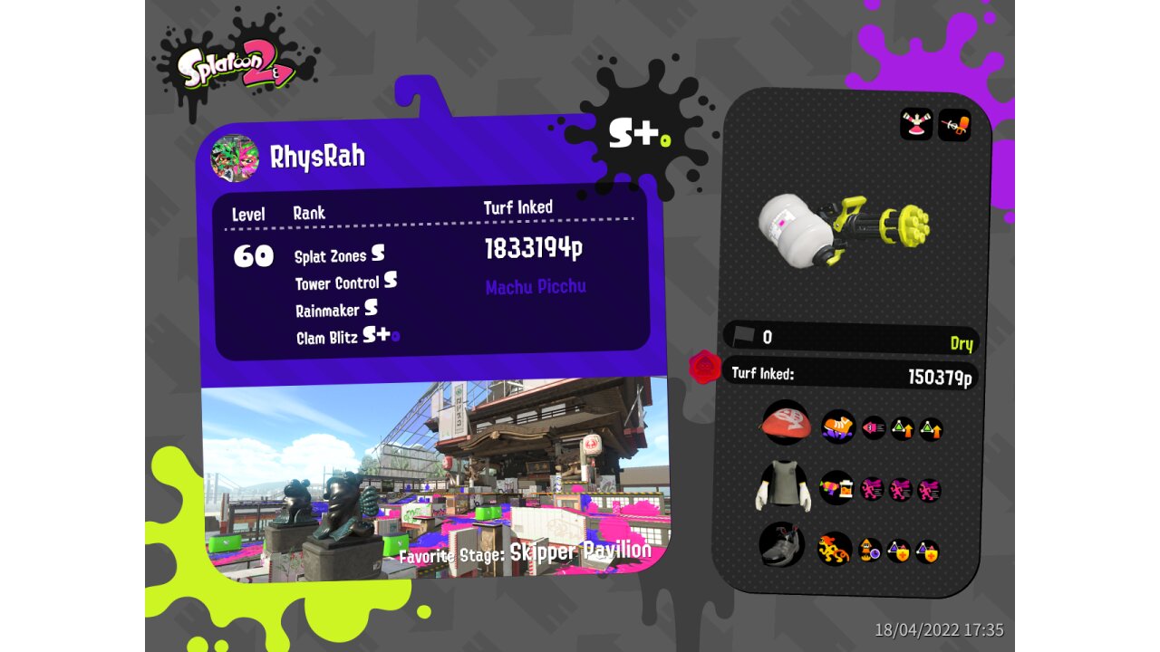 | Name | Weapon | Level | Rank | Inked | k+a/sp | k/d |